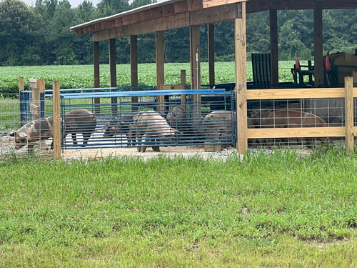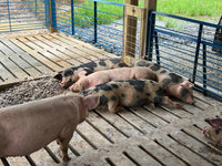 Our pigs are raised on pasture with access to wooded areas. They root, forage, and move naturally just as Uncle Kenneth did it 70 years ago.